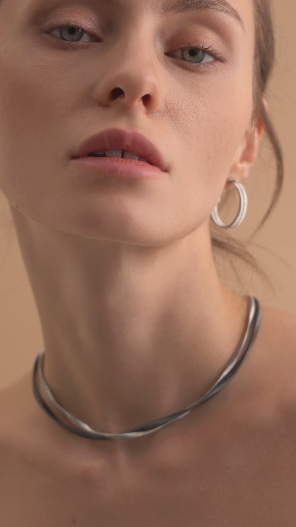 Two strands of light, intricately twined, grace the neck with a soft, luminous hold. They curve and cling like a whispered secret—elegant, intimate, and ever-illuminated.